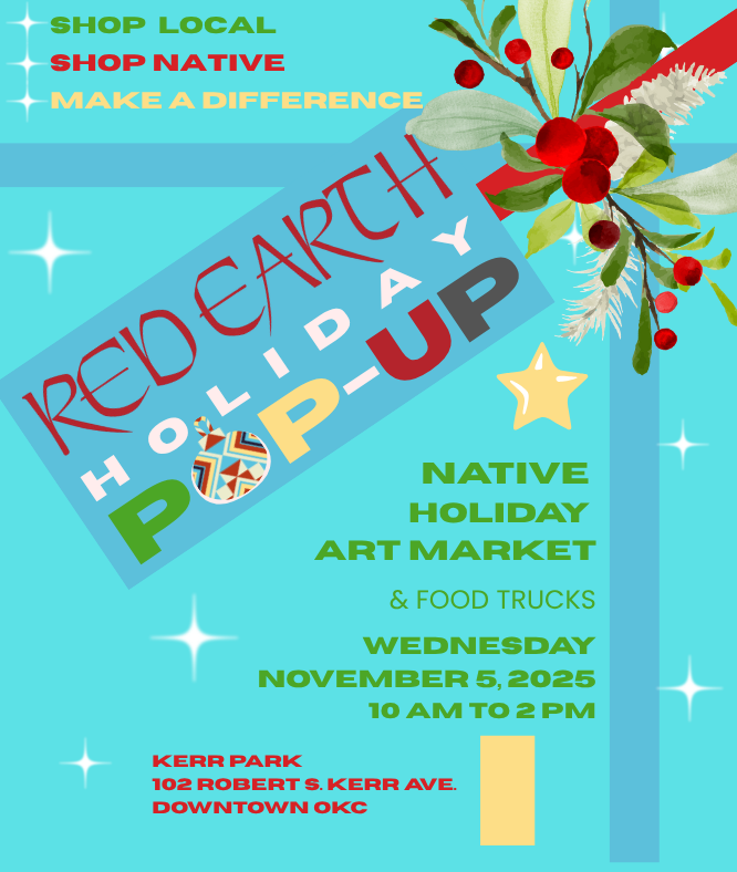 Join us at Kerr Park in downtown Oklahoma City on Wednesday, November 5, 2025, for a one-day outdoor market featuring Native artists and food trucks. Shop for authentic Native art and holiday gifts during the busy downtown lunch hour.