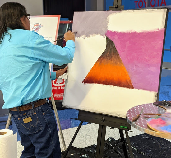 Red Earth is dedicated to honoring and showcasing the art of local Native Americans, such as Comanche artist and U.S. Army veteran, Timothy Tate Nevaquaya who conducted a live paint during the Nov. 11th home game against the Toronto Raptors at Paycom Center.