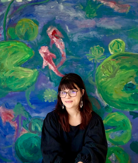 ShopLauren Kelly is an Oklahoma-based painter known for her asymmetrical designs and dreamlike figures. Her work reinterprets Potawatomi and Woodland styles to explore themes of autonomy, ancestral memory, and feminine identity.