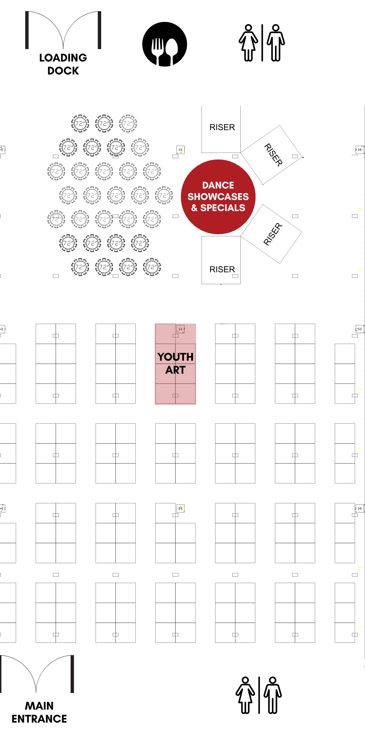To support our artists, we encourage you to use these performance windows as a chance to take breaks. Trusted Artist Aides will be present throughout the festival, with additional coverage during dance times, so you can step away from your booth if needed and know your space is being watched over.