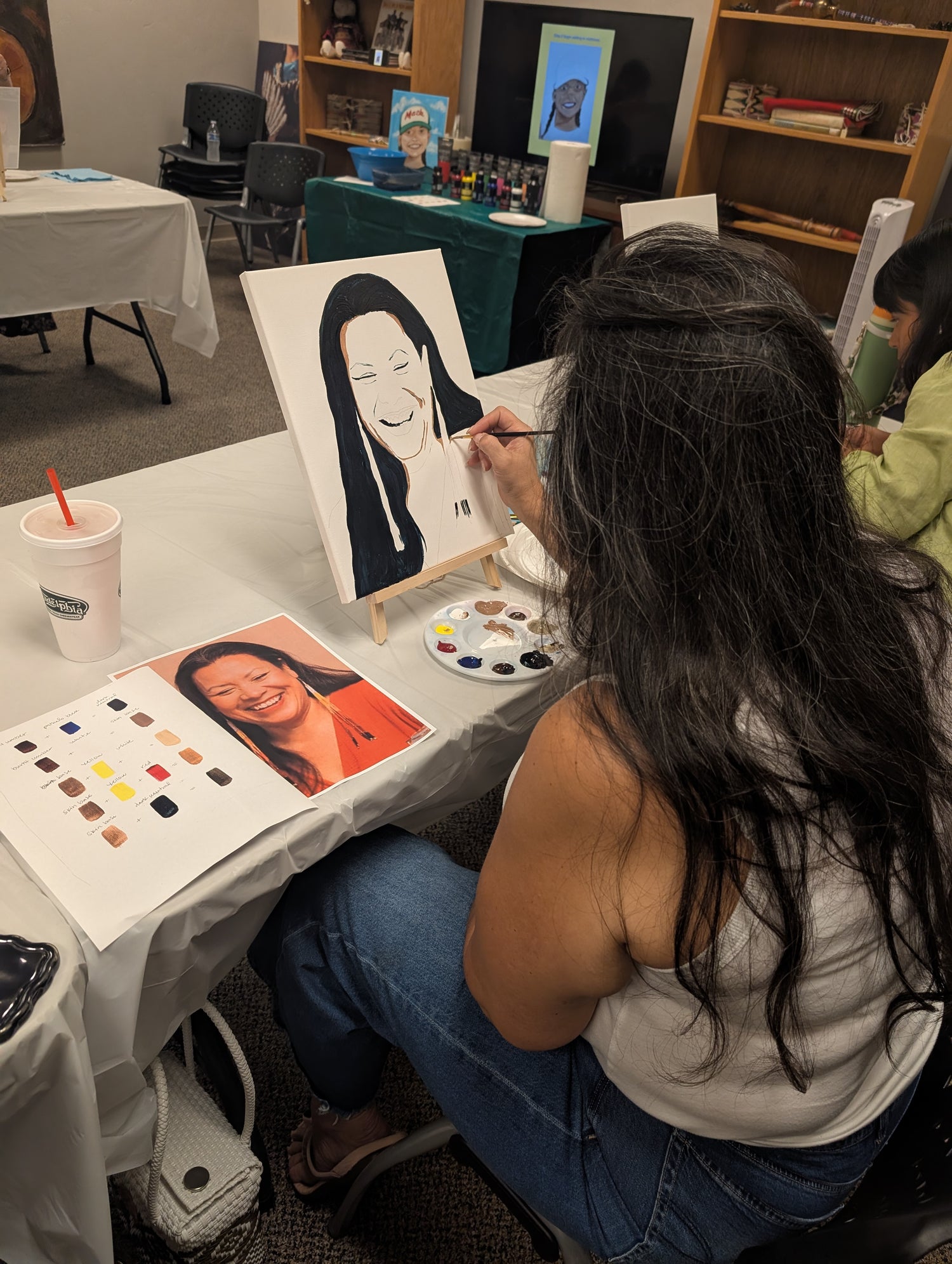 Mack’s approach to portraiture is rooted in observation and emotion. She helps participants understand how subtle shifts in light and shadow can completely change how we see a face, and how color brings warmth, depth, and life to a painting.