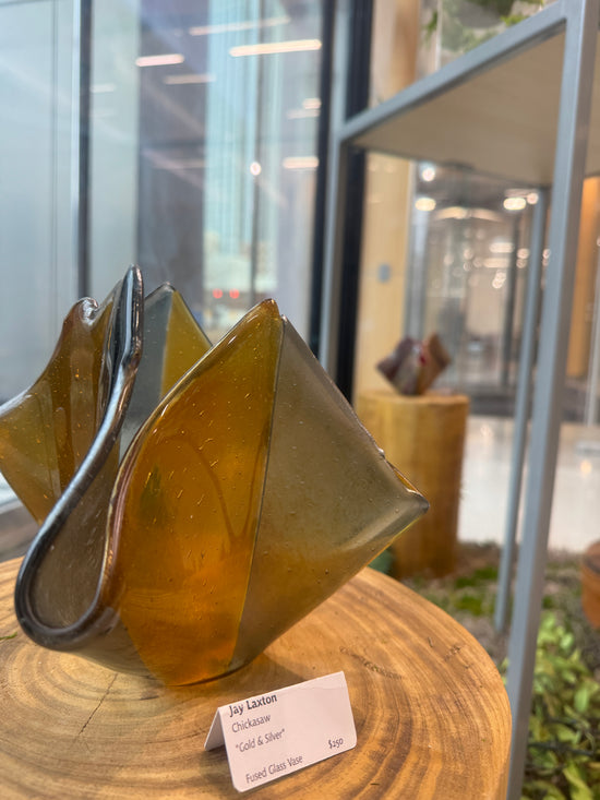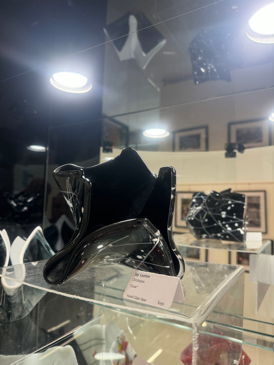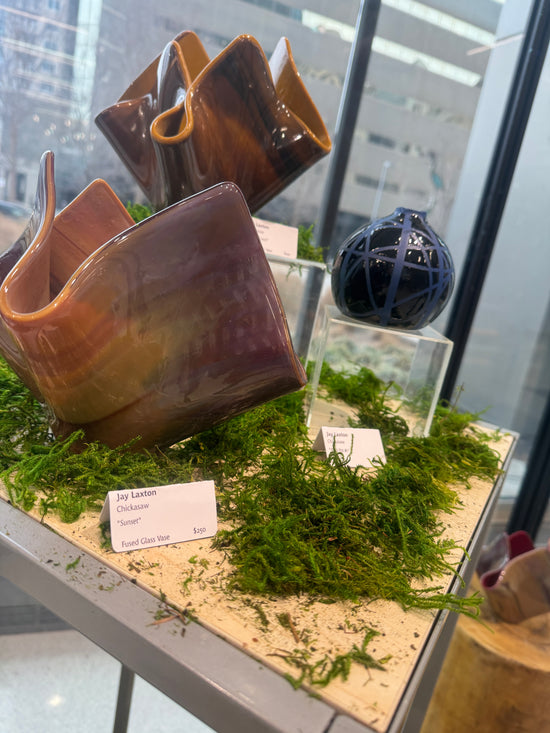 Jay Laxton (Chickasaw) works in photography and glass, combining technical experimentation with a careful attention to light and movement. His work often explores alternate wavelengths, natural processes, and reflective surfaces. Jay’s interest in the relationship between science and visual art guides his practice, creating pieces that shift the viewer’s sense of what is familiar and what sits just beyond sight.