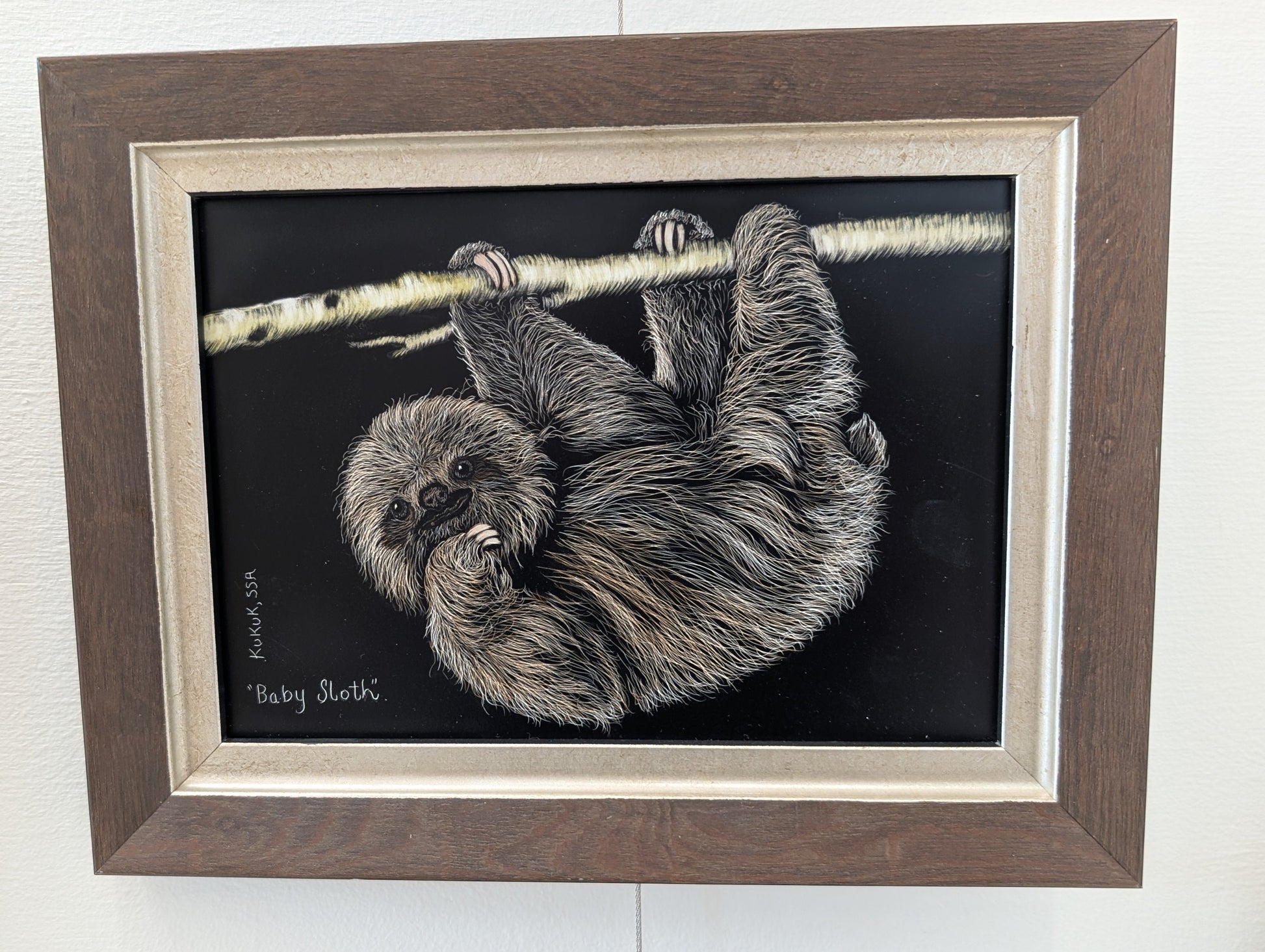 Beautifully framed and ready to display, Baby Sloth is a one-of-a-kind piece that showcases Kukuk’s mastery of precision and her talent for bringing wildlife to life with remarkable care.