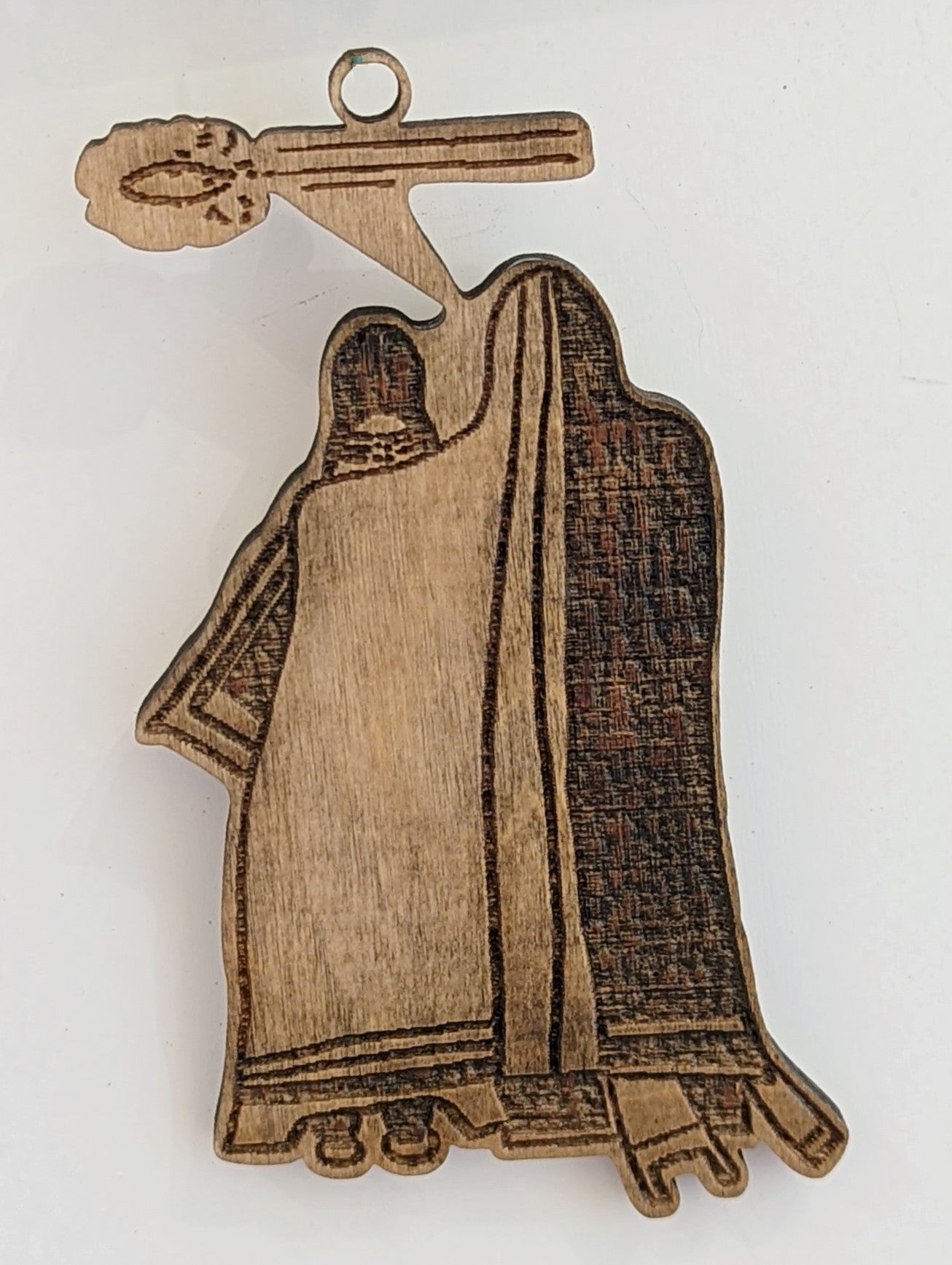 Laser Cut Wood Courtship Couple Wrapped in a Blanket with a UFO Flying Overhead Ornament