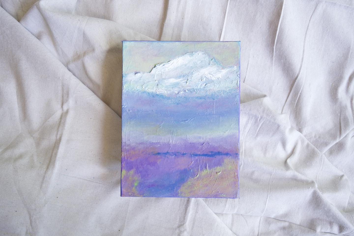 A soft pastel sky stretches across this small landscape, catching that familiar feeling of almost home. The kind of drive where you have snacks in the passenger seat, a favorite playlist playing, and clouds that seem to have opinions. Light shifts across the horizon in gentle purples and blues, creating a calm scene filled with quiet anticipation.