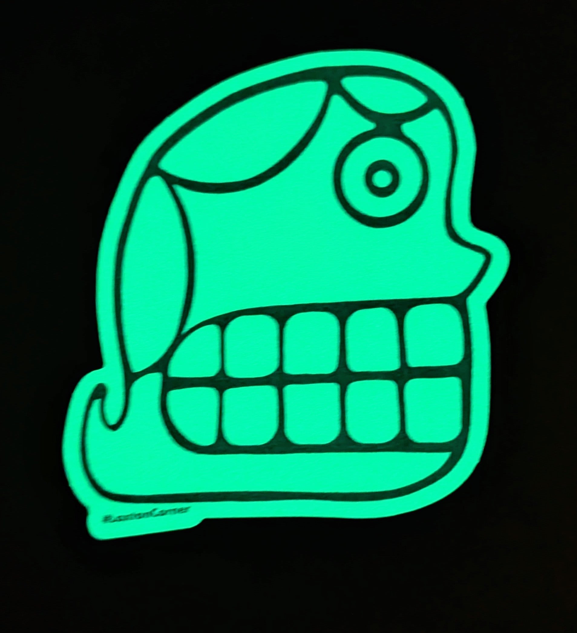 This striking black-and-white skull design draws from the ancient Mississippian iconography of Moundville, reimagined by Chickasaw artist Jay Laxton. With bold lines and a modern edge, this sticker pays tribute to Southeastern traditions, and it glows in the dark for an extra layer of intrigue.