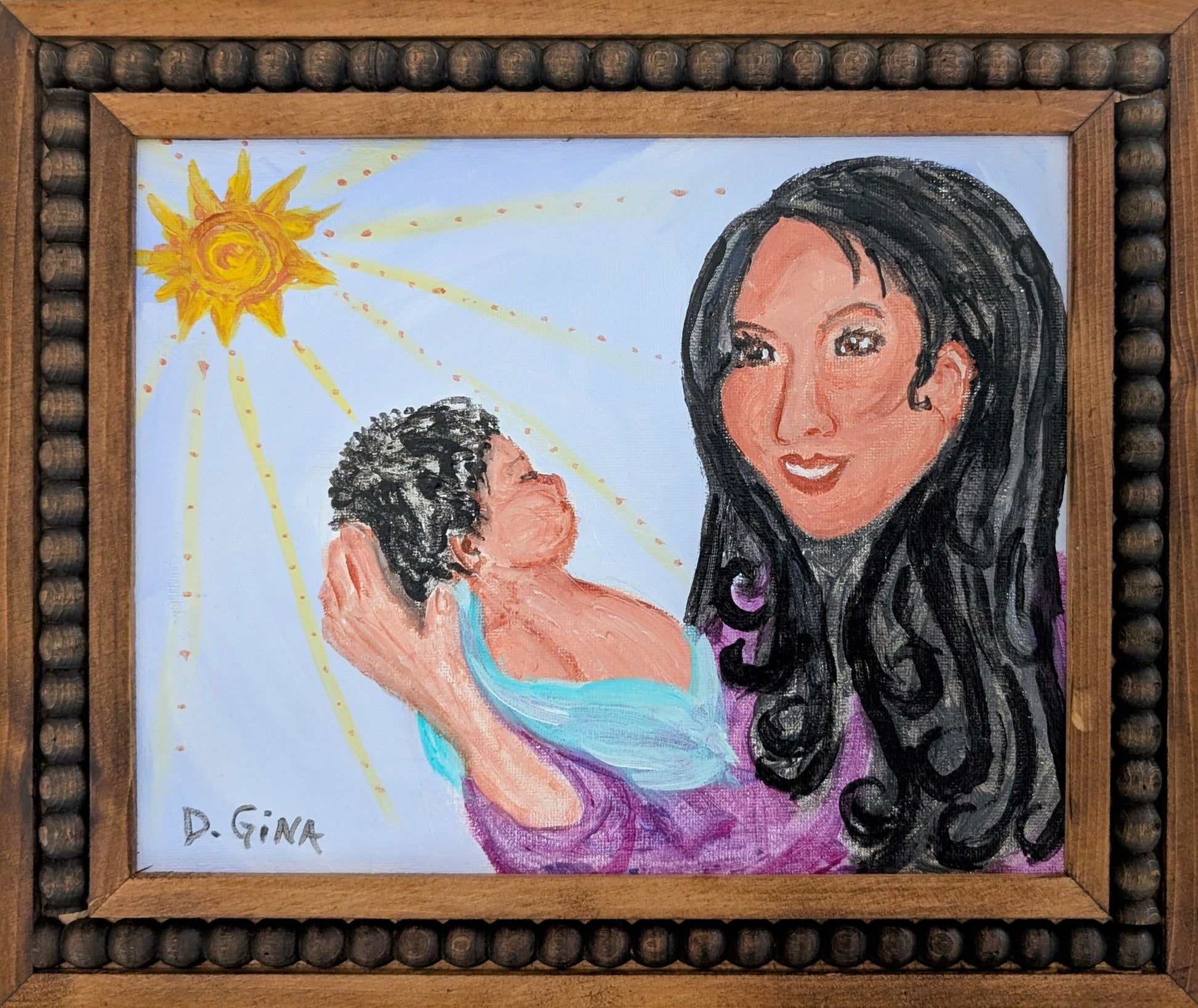A moment of profound bonding between a mother and her newborn, New Life celebrates the strength, love, and resilience passed from one generation to the next. The presence of the sun symbolizes Creator’s blessing and the warmth of maternal devotion.