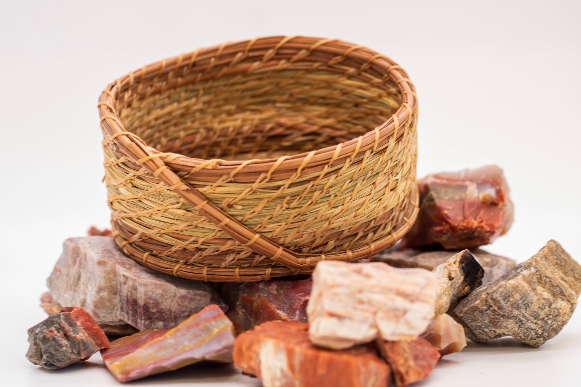 This hand-coiled pine needle basket is crafted with care by Cherokee artist Ronda Moss. Each stitch brings together patience, skill, and a deep connection to natural materials. Pine needle baskets are known for their warm scent, earthy texture, and timeless beauty, and this piece carries the quiet rhythm of the artist’s hands in every curve.
