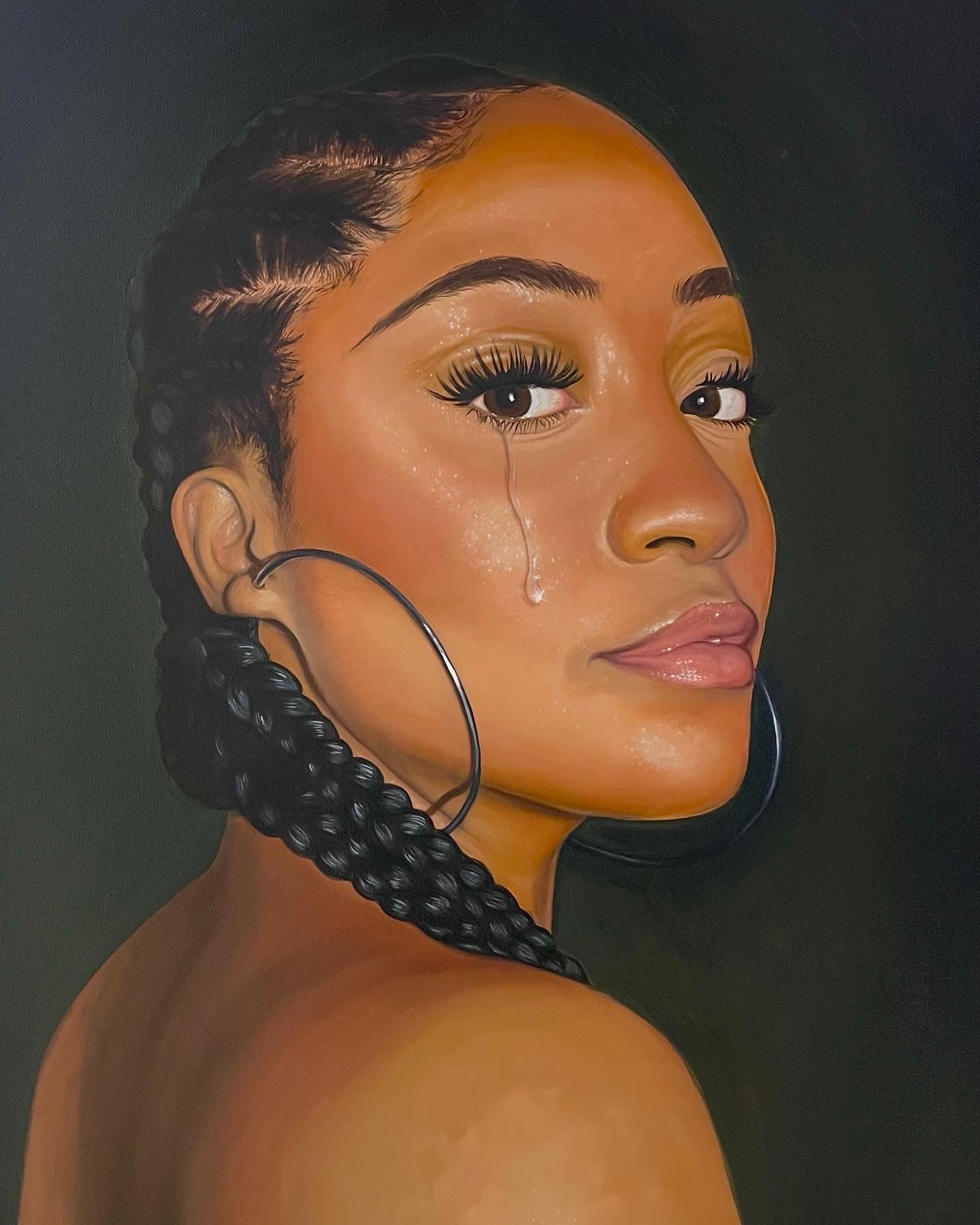 “The Last Tear" is a painting that depicts the strength of hope. I’m inspired by the phrase 'a strong back and a soft belly,' which perfectly captures what this piece represents to me. A woman who embraces her inner strength while allowing herself to be vulnerable.